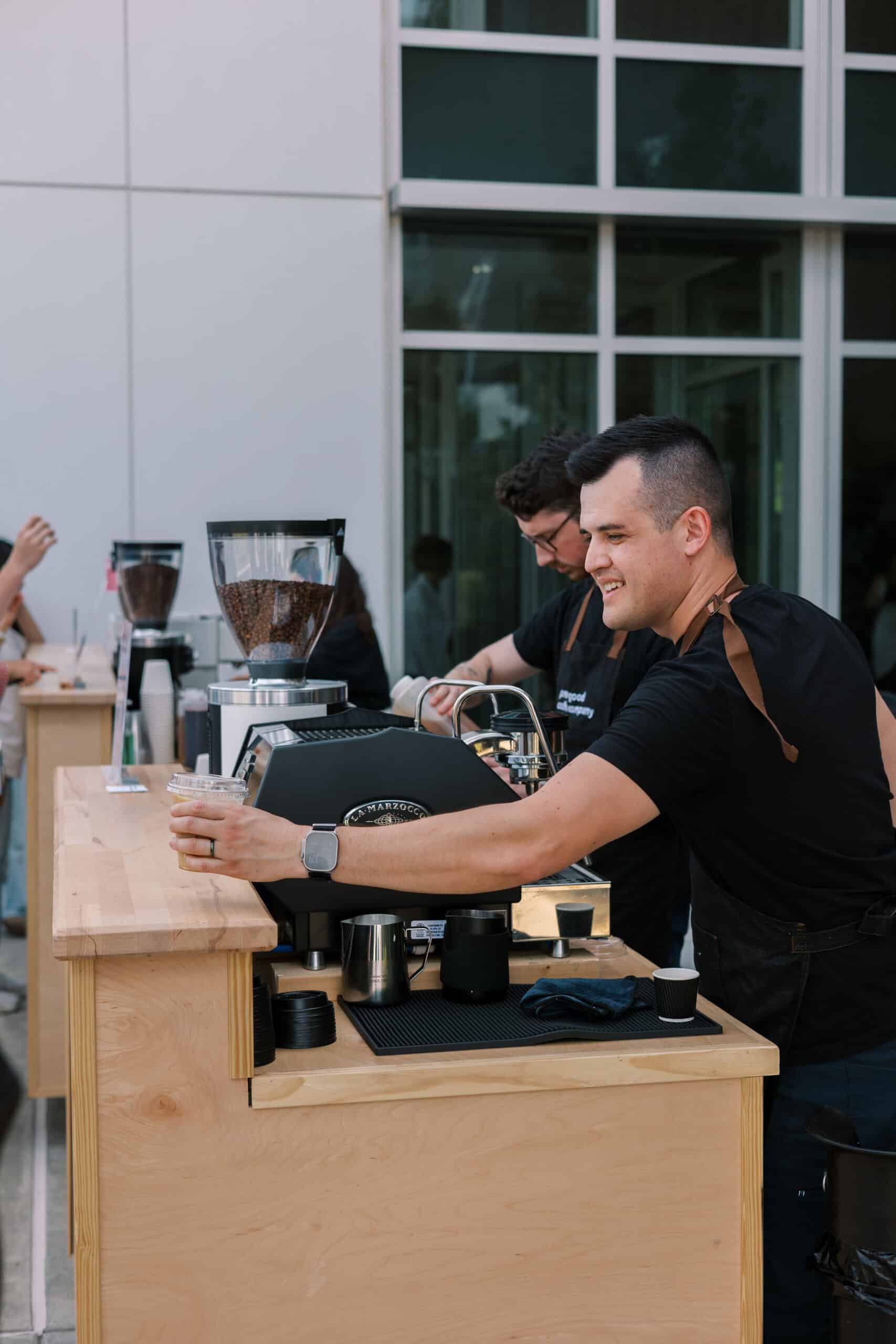 We want to give you a full-service coffee experience. Whether you’re a casual Saturday morning coffee drinker or a self-proclaimed coffee expert, we want to provide excellent coffee at your event. We can offer all the classics, such as lattes, flat whites, cappuccinos, macchiatos, and americanos. Or, if you prefer non-coffee drinks such as matcha, tea, or sparkling water, we’ve got you covered.